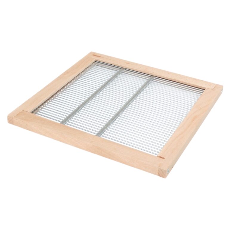 In deiner Mini Plus Beute ist kein Platz für Kompromisse – erst recht nicht bei der Abgrenzung von Brut- und Honigraum. Das Mini Plus Absperrgitter im Hartholzrahmen erfüllt genau diesen Anspruch: Es trennt zuverlässig und präzise, ohne den natürlichen Bienenfluss zu stören. Das verzinkte Rundstabgitter schafft durch seine gleichmäßige Spaltweite einen optimalen Bee Space – ein entscheidender Faktor für die problemlose Annahme durch das Volk. Eingelassen in einen massiven, unbehandelten Hartholzrahmen, fügt es sich bündig in die Zarge ein. Ohne hervorstehende Falz, ohne Bienen zu quetschen.