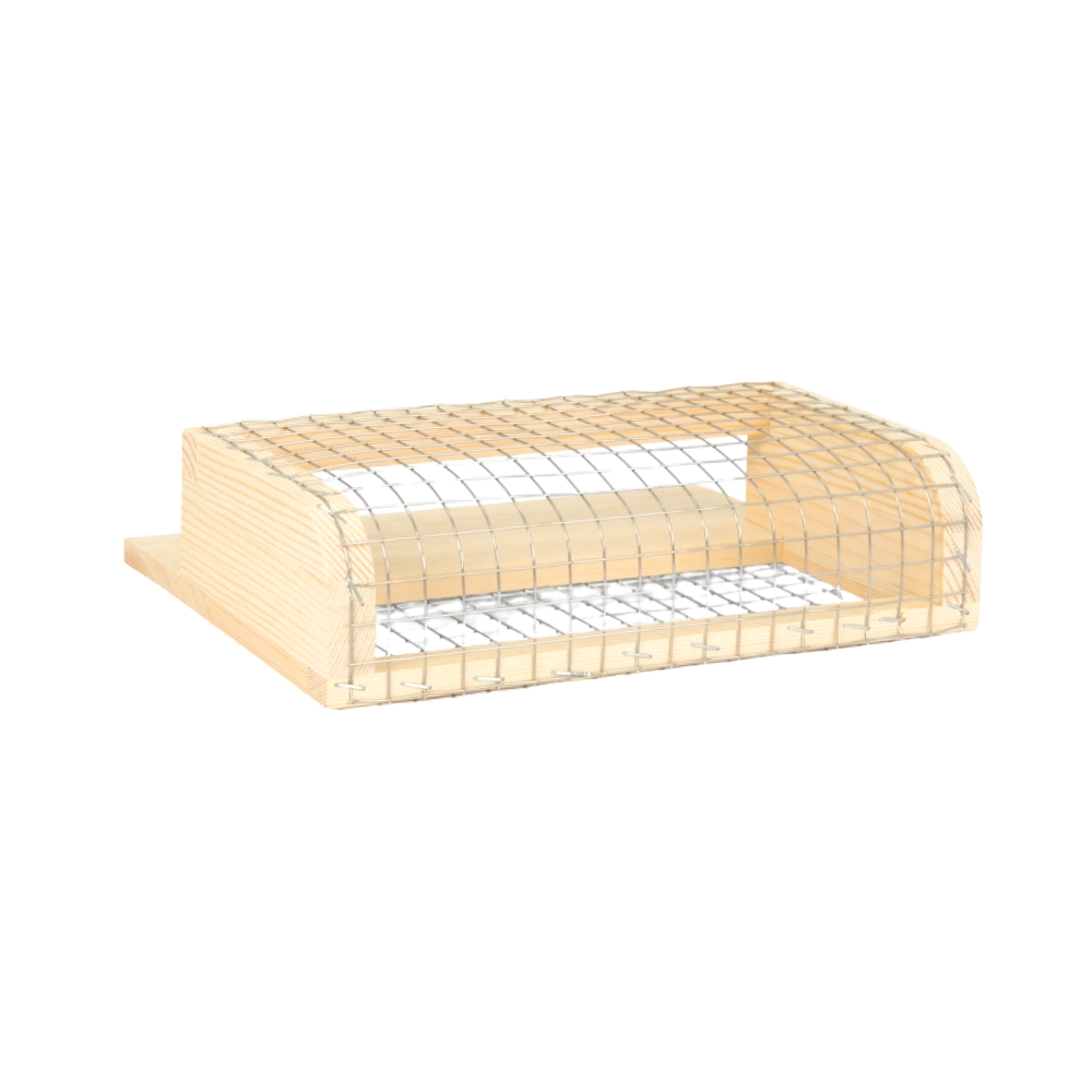 Das engmaschige Edelstahlgitter mit 12 × 12 mm Maschenweite unterbricht die Fluglinie der Hornisse, ohne die Sammlerinnen zu behindern. Der Schutz lässt sich unkompliziert an Mini Plus Styropor Böden I und II (weiß und grau) montieren – werkzeuggeführt, sicher und ohne Umbauten. Die Ausführung ist bewusst leicht gehalten, besteht jedoch aus robustem Holz und widerstandsfähigem Edelstahl – ideal für den dauerhaften Einsatz im Außenbereich.