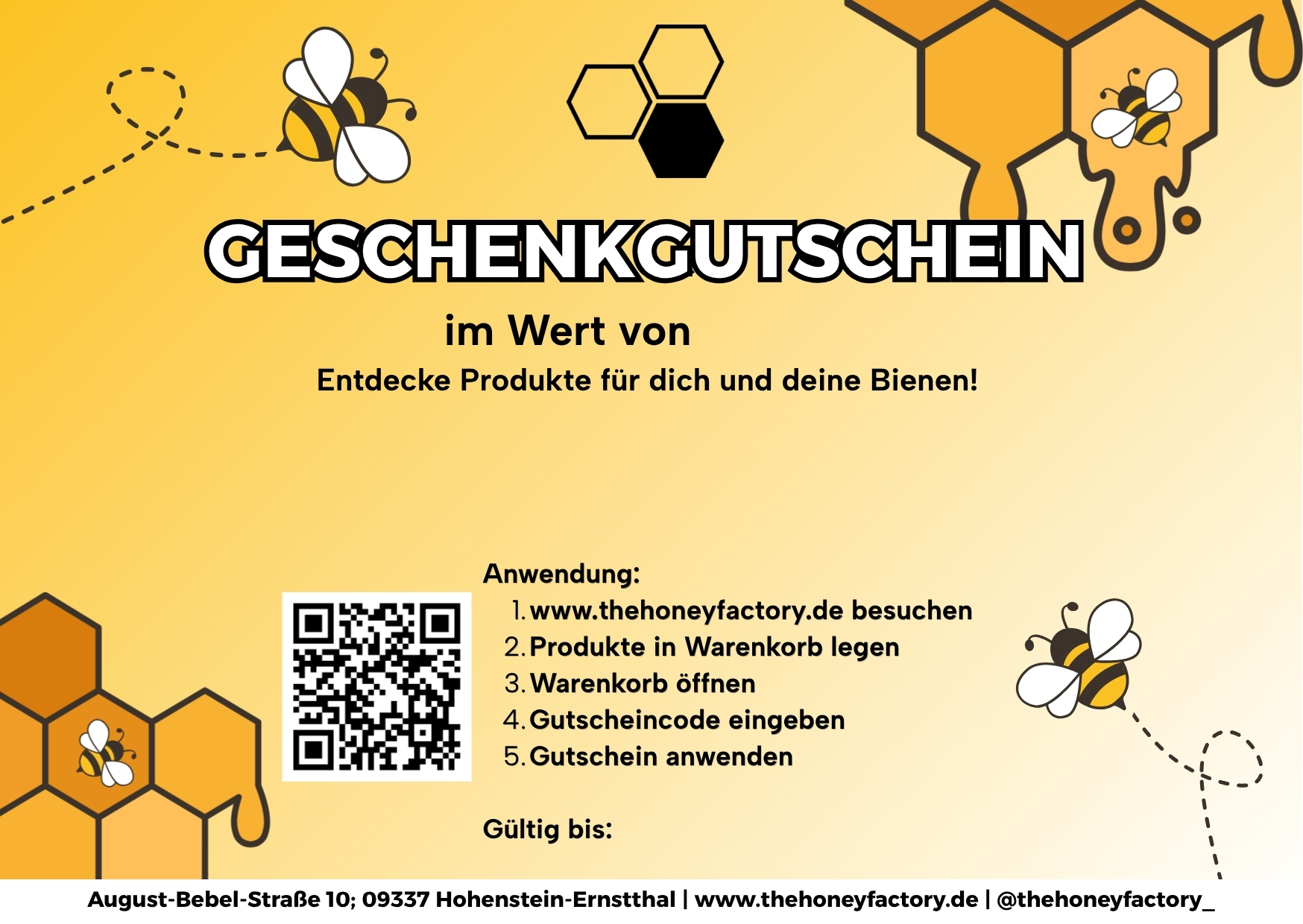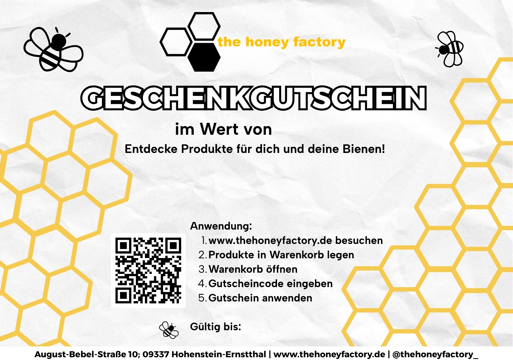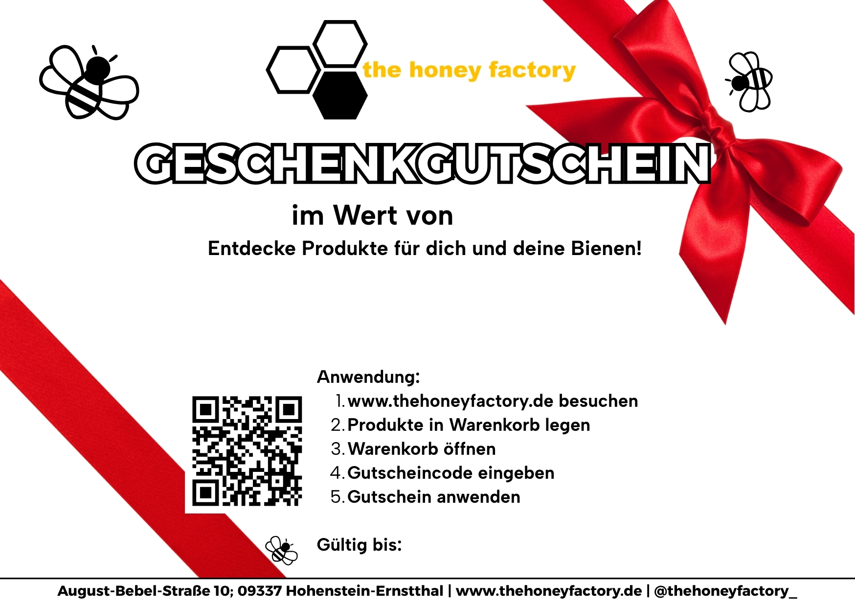 - Einfache Einlösung auf www.thehoneyfactory.de beim Checkout