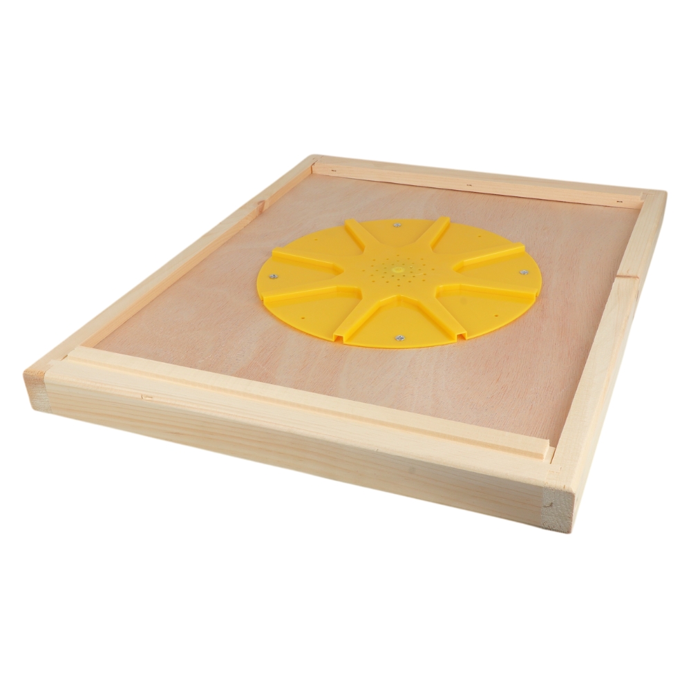 Bienenflucht mit zentral liegenden 8 Ausgängen für die einfache Honigernte. Inklusive befestigtem Fluchteinsatz aus Hartplastik mit 8 Ausgängen.