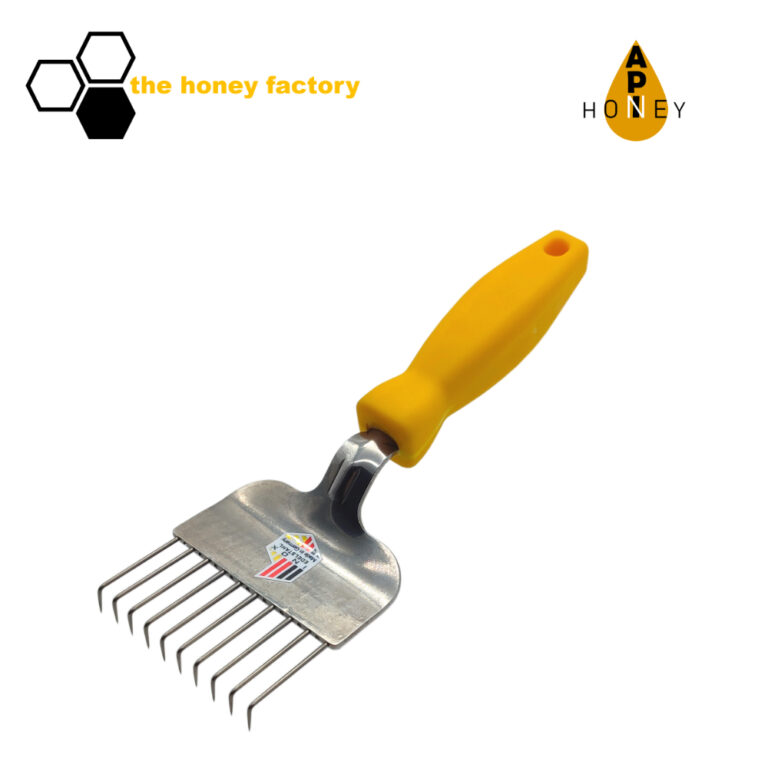 Die gebogenen Nadeln unserer Wabenegge ermöglicht Dir das Entdeckeln deiner Honigwaben durch Aufreißen des Deckelwachses.