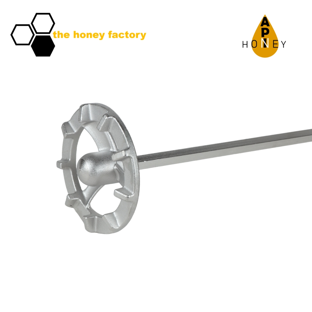 Der robuste Rührstab aus hochwertigem Edelstahl garantiert eine effiziente und gleichmäßige Honigverarbeitung. Mit dem speziell geformten Rührflügel und dem stabilen Sechskantstab wird jede Herausforderung gemeistert.