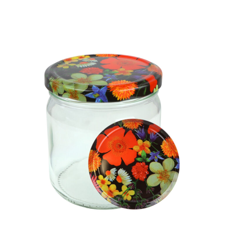 Twist-Off Glas 500g mit TO- Gewinde inklusive Metalldeckel "BLÜMCHEN" im 12er Karton
